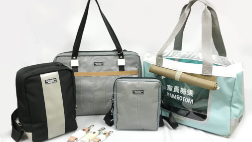 鉄道の引退車両の部材からバッグを製作している鞄・袋物の縫製メーカー サンワードです。