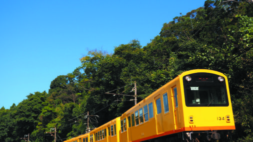 "忍者のふるさと"として知られる三重県伊賀市を走る伊賀鉄道は、JR関西線伊賀上野駅と近鉄大阪線伊賀神戸駅を結ぶ16.6kmの鉄道で、開業100年を超える歴史ある路線です。昔懐かしい里山の景色を背景に、日本でもここだけでしか見られないユニークなラッピング列車「忍者列車」が走っています。車体にくノ一(女性忍者)をデザインした忍者列車は、『銀河鉄道999』でお馴染みの故・松本零士先生のデザインです。 -